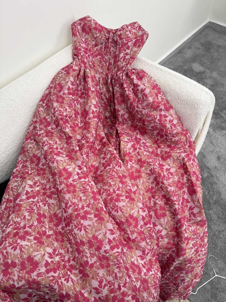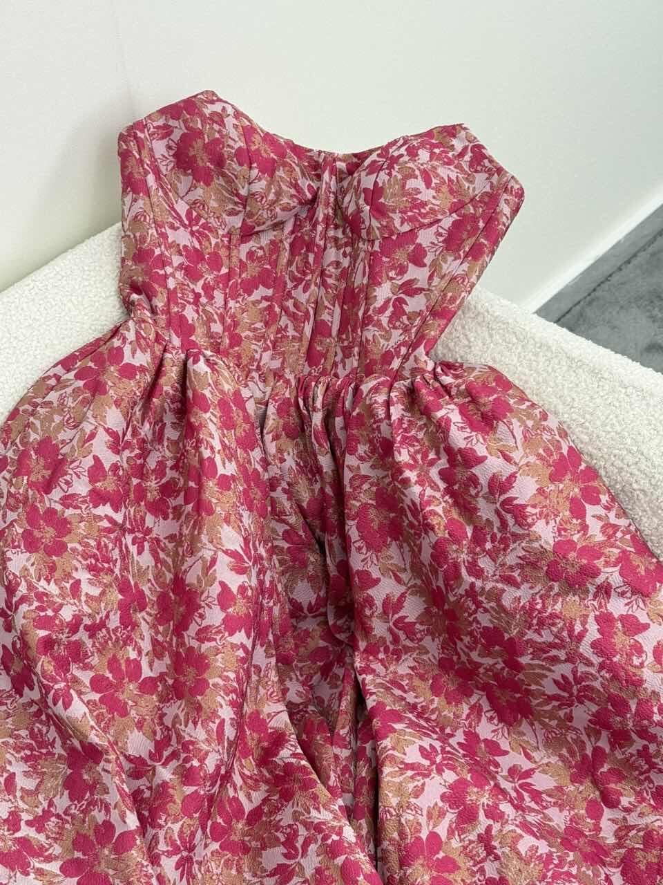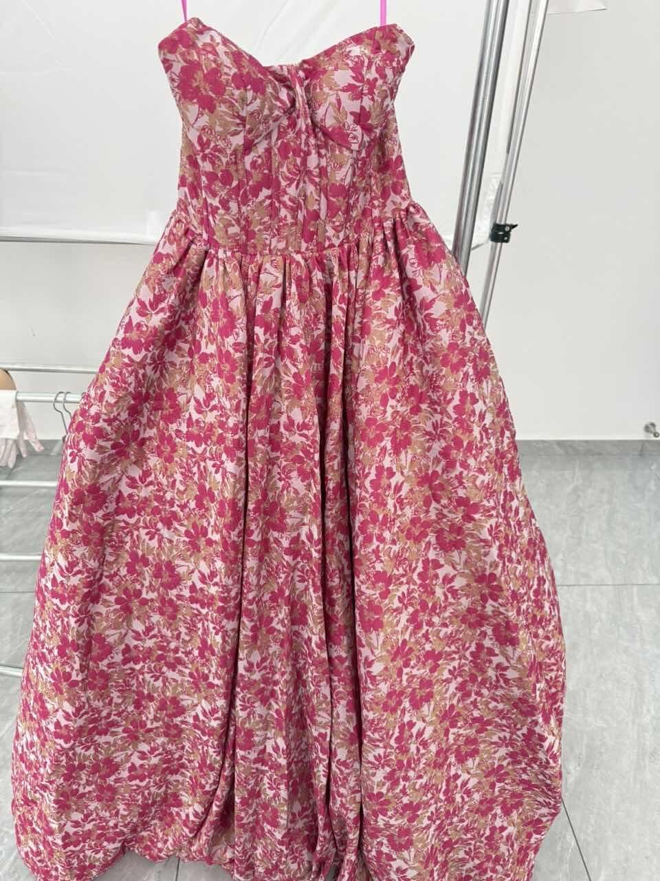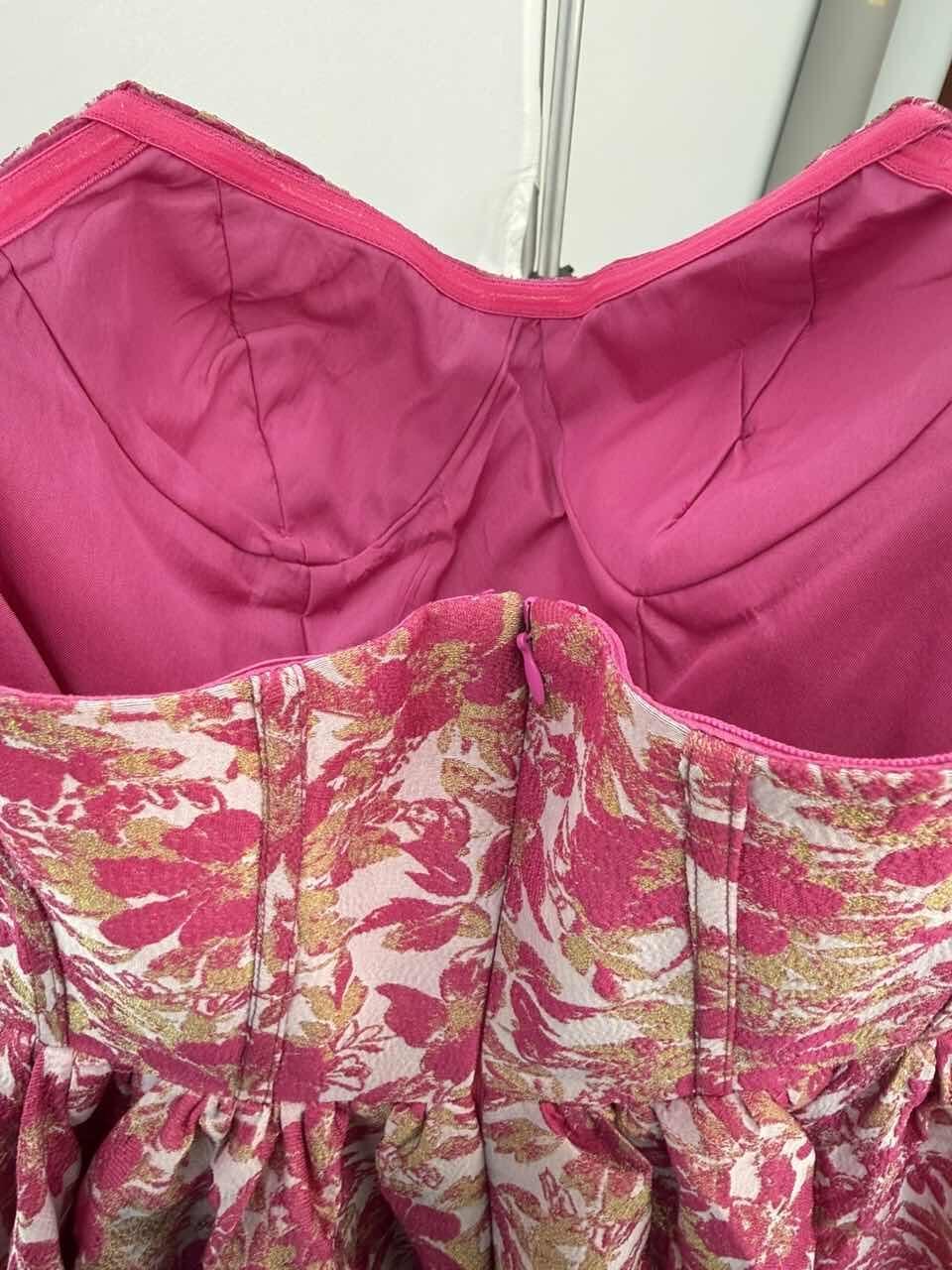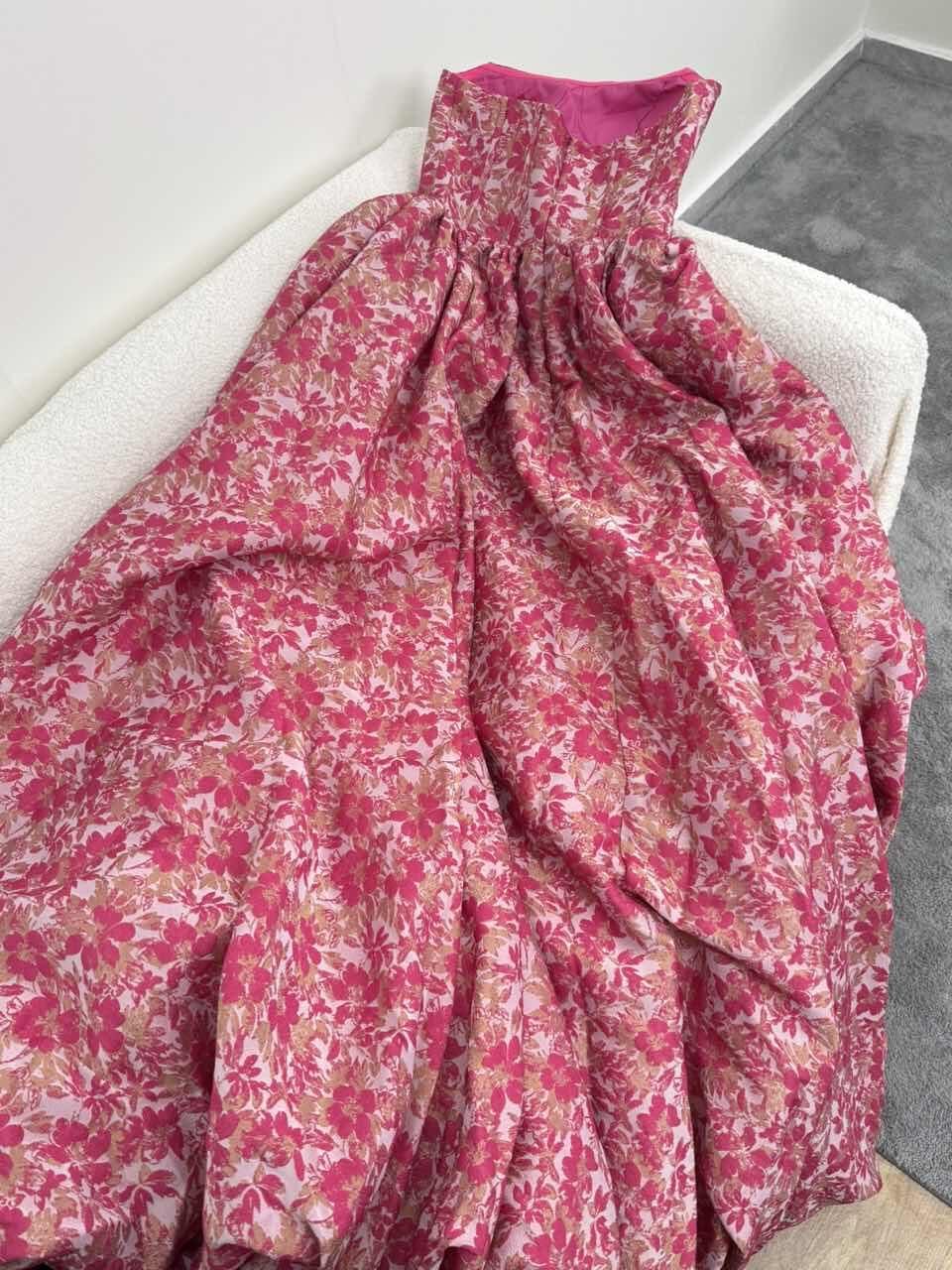 Fabric: Structured floral jacquard fabric with a soft sheen for a rich, voluminous look.